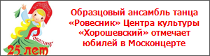 Лауреат Всероссийских и международных фестивалей образцовый ансамбль танца «Ровесник» московского Центра культуры «Хорошевский» в 2018 году отмечает свой 25-й день рождения. В Зеркальном зале Москонцерта по адресу: ул. Пушечная, д. 4, стр. 2, 28 апреля сего года, в 17:00 состоится большой праздничный юбилейный концерт. Вход свободный. У истоков создания популярного коллектива в 1993 году стояли первый директор ЦК «Хорошевский» Ирина Александровна Матюнина и главный балетмейстер - художественный руководитель ансамбля, заслуженный работник культуры Российской Федерации Лариса Ивановна Левина. За прошедшие четверть века «Ровесник» из небольшой детской студии танца вырос в большой танцевальный коллектив. Первый сольный концерт ансамбля состоялся всего чрез 5 лет со дня основания и прошел в Государственном концертном зале имени Петра Ильича Чайковского. Начиная с того памятного дня, «Ровесник» еще более десятилетия выступал непременным участником практически всех сборных танцевальных концертов, проводившихся на сцене знаменитого на всю страну зала. Танцевальный коллектив регулярно выступает на концертных площадках Москвы, различных городов России, стран ближнего и дальнего зарубежья. Ансамбль успешно гастролировал в Австрии, Германии, Франции, Испании, Венгрии, Болгарии, Словакии, Чехии, Греции, Финляндии и Италии. В концертной программе «Ровесника» боле 60-ти танцевальных номеров, поставленных в разнообразных стилях и направлениях: классические, эстрадные, народные танцы различных стран мира, постановки в стиле модерн, детские и игровые миниатюры, большие танцевальные композиции. Коллектив воспитывает детей с 6 лет. Главной задачей педагогов и преподавателей ансамбля, является воспитать и вырастить из детей не только прекрасных и техничных танцоров, но и умных, свободных и добрых людей. Обладающих развитым музыкальным вкусом, собственным устойчивым мировоззрением и полностью уверенных в своих способностях и силах. Всего за время существования ансамбля через него прошло около 7 тысяч человек! Часть воспитанников, прошедших школу танца и жизни в «Ровеснике», выбрали танцевальную карьеру, на практике применяя приобретенные в ансамбле знания и навыки. Для самых маленьких участников ансамбля учебный и воспитательный процесс включает в себя освоение базовой хореографической программы и основ физической подготовки. Дети учатся слушать и понимать музыку, выполнять основные танцевальные движения. В процессе дальнейшего обучения они осваивают более сложные хореографические номера, учатся классическому танцу, развивают мышечную силу и выносливость. Для старших воспитанников ансамбля основными направлениями обучения становится освоение более сложных танцевальных техник и развитие артистизма. В процессе регулярных занятий проводится работа над повышением уровня индивидуального мастерства, а участие в концертных программах, учит дарить благодарным зрителям яркие и положительные эмоции. В танцевальном коллективе трудятся профессиональные педагоги, знающие как передать своим ученикам мастерство и научить их добиваться поставленных задач. Наставники ответственно и требовательно относятся к учебному и воспитательному процессу, обучая детей умению чувствовать свободу и красоту движения, воспитывая в них настойчиво