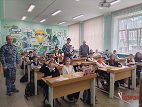 Помимо этого, они познакомили юных учащихся школы с историями сотрудников и военнослужащих войск правопорядка, отдавших свою жизнь за защиту Родины.
